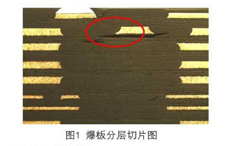 多張內(nèi)層芯板和半固化片疊加,壓合生產(chǎn)時容易產(chǎn)生滑板、分層、樹脂空洞和氣泡殘留等缺陷。在設(shè)計疊層結(jié)構(gòu)時,需充分考慮材料的耐熱性、耐電壓、填膠量以及介質(zhì)厚度,并設(shè)定合理的高層板壓合程式。層數(shù)多,漲縮量控制及尺寸系數(shù)補償量無法保持一致性;層間絕緣層薄,容易導(dǎo)致層間可靠性測試失效問題。圖1是熱應(yīng)力測試后出現(xiàn)爆板分層的缺陷圖。