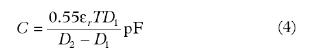 公式(4)示出了如何計算通孔(參見圖8)引起的寄生電容值。