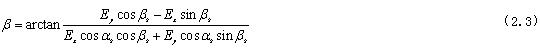 由公式2.2,經(jīng)過(guò)相應(yīng)的數(shù)學(xué)計(jì)算,可得到偏角 的計(jì)算公式: