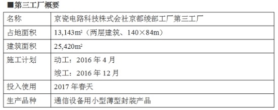 京都綾部工廠于2005年成立以來,生產(chǎn)出市場份額占業(yè)界首位的高端ASIC用FCBGA基板等產(chǎn)品,積累了高密度布線技術(shù)、生產(chǎn)工序自動化技術(shù)、小型薄型化生產(chǎn)技術(shù)等尖端技術(shù)。2014年夏天,在工廠用地內(nèi)建立了二工廠,生產(chǎn)通信設(shè)備用的小型薄型封裝。此次建立三工廠,旨在進一步擴大市場份額。