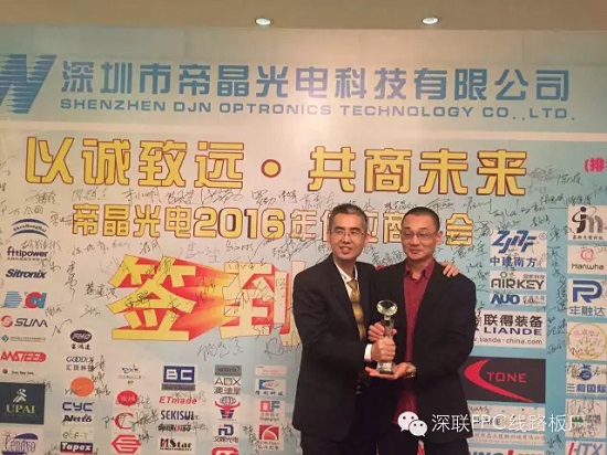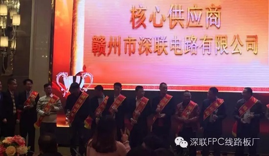 3月25日,天氣晴好,深圳沙井福永,內(nèi)液晶顯示模組領(lǐng)軍企業(yè)帝晶光電召開年度供應(yīng)商大會,贛州市深聯(lián)電路作為帝晶光電的主打FPC供應(yīng)商,一舉斬獲“2015年度核心供應(yīng)商”大獎。