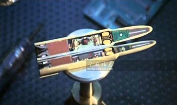 圖為“精確制導(dǎo)子彈”的實際剖面截圖,可見與傳統(tǒng)子彈的結(jié)構(gòu)截然不同,可見微型彈道計算機和傳感器。