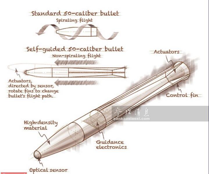 狙擊手在使用制導(dǎo)子彈時,只要鎖定目標(biāo),不論朝哪個方向射擊,子彈后都能通過自主修正彈道命中目標(biāo)。這張手繪圖展示了制導(dǎo)子彈和傳統(tǒng)子彈之間的顯著區(qū)別,傳統(tǒng)子彈需要靠自旋穩(wěn)定彈道(上),制導(dǎo)子彈(下)無需自旋,直接靠尾部的彈翼就可改變飛行彈道。有人吐槽稱,配備這種子彈后,人人都能成為神槍手,或許狙擊手的時代就此結(jié)束了。吐槽歸吐槽,制導(dǎo)子彈的實戰(zhàn)效果仍需拭目以待。