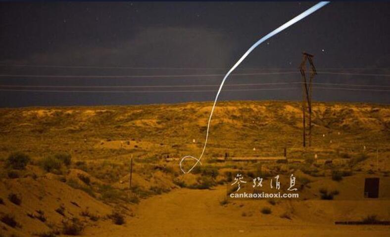 制導(dǎo)子彈的傳動系統(tǒng)包括一個驅(qū)動電機和一個形似魚鰭的微型可控彈尾。驅(qū)動電機可為傳統(tǒng)系統(tǒng)提供動力,微型尾翼可不斷調(diào)整彈道,使子彈以曲線彈道擊中目標(biāo)(即使目標(biāo)躲在墻后也可打中)。圖為美軍在桑迪亞家試驗室進行制導(dǎo)子彈試射時的延遲攝影圖,圖中看到的彈道實際是制導(dǎo)子彈尾部的LED指示燈留下的,可以清晰看到其在飛行中可多次改變彈道直至命中目標(biāo)。