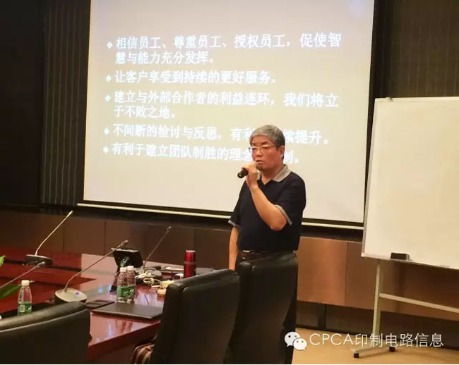 20日上午,資深專家閆海忠先生首先開講。閆海忠先生,研究員級高級工程師。曾任南方航空動力機械公司工藝員、工程師、技術室主任、分廠廠長,原深圳中航集團下屬深南電路股份有限公司總經(jīng)理,現(xiàn)CPCA顧問。2005年~2012年在深圳中航集團分管《管理創(chuàng)新和精益六西格瑪管理推廣》工作,具有廣泛的企業(yè)管理和精益生產(chǎn)管理經(jīng)驗。深南電路歷年來持續(xù)推進管理創(chuàng)新工作,各種管理方法工具諸如TQC、6S、六西格瑪、精益生產(chǎn)、項目管理等得到了深入、全面的應用,管理創(chuàng)新活動和實踐敢為人先,取得了良好的成效,為先進管理理念和方法的推廣起到了積極的垂范作用!本次專題培訓主要由閆海忠專家傳授精益生產(chǎn)的課程,內(nèi)容包括:精益管理理念、精益生產(chǎn)管理的實質(zhì)追求、精益生產(chǎn)管理的路徑和方法。閆老師特別指出,精益生產(chǎn)不是一項孤立的管理工作。
