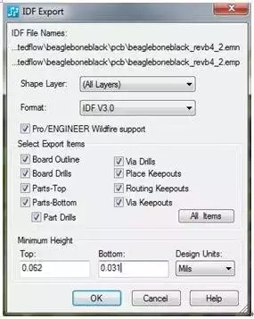 系統(tǒng)需要能夠以與 DXF 參數(shù)設(shè)置類似的方式,來控制 IDF 文件中將包含的內(nèi)容,如圖 6 中所示。如果某些元器件沒有高度信息,IDF 導(dǎo)出能夠在創(chuàng)建過程中添加缺少的信息。