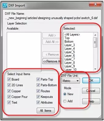 圖 5:PCB 設(shè)計工具(如這里介紹的 PADS)需要能夠使用 DXF 格式控制所需的各種參數(shù)。