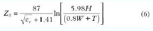 公式(6)可以用于計(jì)算一塊FR4板的特征阻抗。