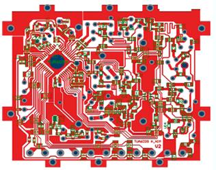 采用單層PCB設(shè)計(jì)ULC調(diào)諧器已廣為客戶接受。在競(jìng)爭(zhēng)激烈的電視調(diào)諧器市場(chǎng)中,任何成本上的改進(jìn)都可能進(jìn)一步降低生產(chǎn)成本。因此,單層PCB與雙層PCB之間的任何成本差異對(duì)于調(diào)諧器的整體BOM(材料清單)來說都非常重要。圖2為終的PCB設(shè)計(jì)。該half NIM設(shè)計(jì)使用厚度1.6mm的單面FR4 PCB。