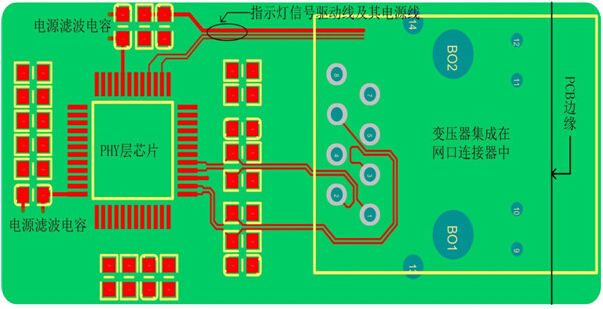 圖 3一體化連接器的網(wǎng)口PCB布局、布線(xiàn)參考圖