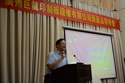 在隨后的新品發(fā)布會上,嚴總生動風(fēng)趣地向在場嘉賓介紹了巨龍的成長與騰飛。巨龍科技成立于1998年,專注致力于PCB設(shè)備的研發(fā)和制造,專業(yè)設(shè)計生產(chǎn)PCB內(nèi)層、外層、HDI及FPC、LCD、TP等水平濕制程設(shè)備;2000年,巨龍開始著手研發(fā)撓性板設(shè)備,十五年的研發(fā)之路,成就了巨龍成為內(nèi)首家成功自主研發(fā)制造RTR/DES生產(chǎn)線的企業(yè),開創(chuàng)了內(nèi)FPC行業(yè)的先河。嚴總表示,在未來的三到五年內(nèi),將竭盡全力把巨龍打造成世界品牌!