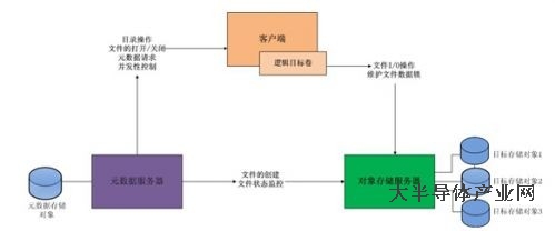 元數(shù)據(jù)服務(wù)器、對象存儲服務(wù)器和客戶端可以分別運(yùn)行于獨(dú)立的操作系統(tǒng)中,也可以運(yùn)行于一個操作系統(tǒng)內(nèi)部。優(yōu)的解決方案是元數(shù)據(jù)服務(wù)器位于一個單獨(dú)的服務(wù)器中,對一個元數(shù)據(jù)存儲對象提供服務(wù),單獨(dú)的對象存儲服務(wù)器為多個對象存儲對象提供服務(wù),客戶端也位于單獨(dú)的服務(wù)器。其結(jié)構(gòu)如下圖所示,圖中為一個元數(shù)據(jù)服務(wù)器,一個對象存儲服務(wù)器,和一個客戶端的示意圖,元數(shù)據(jù)服務(wù)器服務(wù)于一個元數(shù)據(jù)存儲對象,對象存儲服務(wù)器服務(wù)于三個目標(biāo)存儲對象。