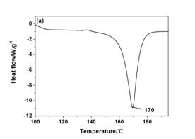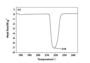 圖 5 納米銀粒子的DSC曲線:(a)抗壞血酸還原,(b)硼氫化鉀還原,(c)硼氫化鉀加PAAS分散劑